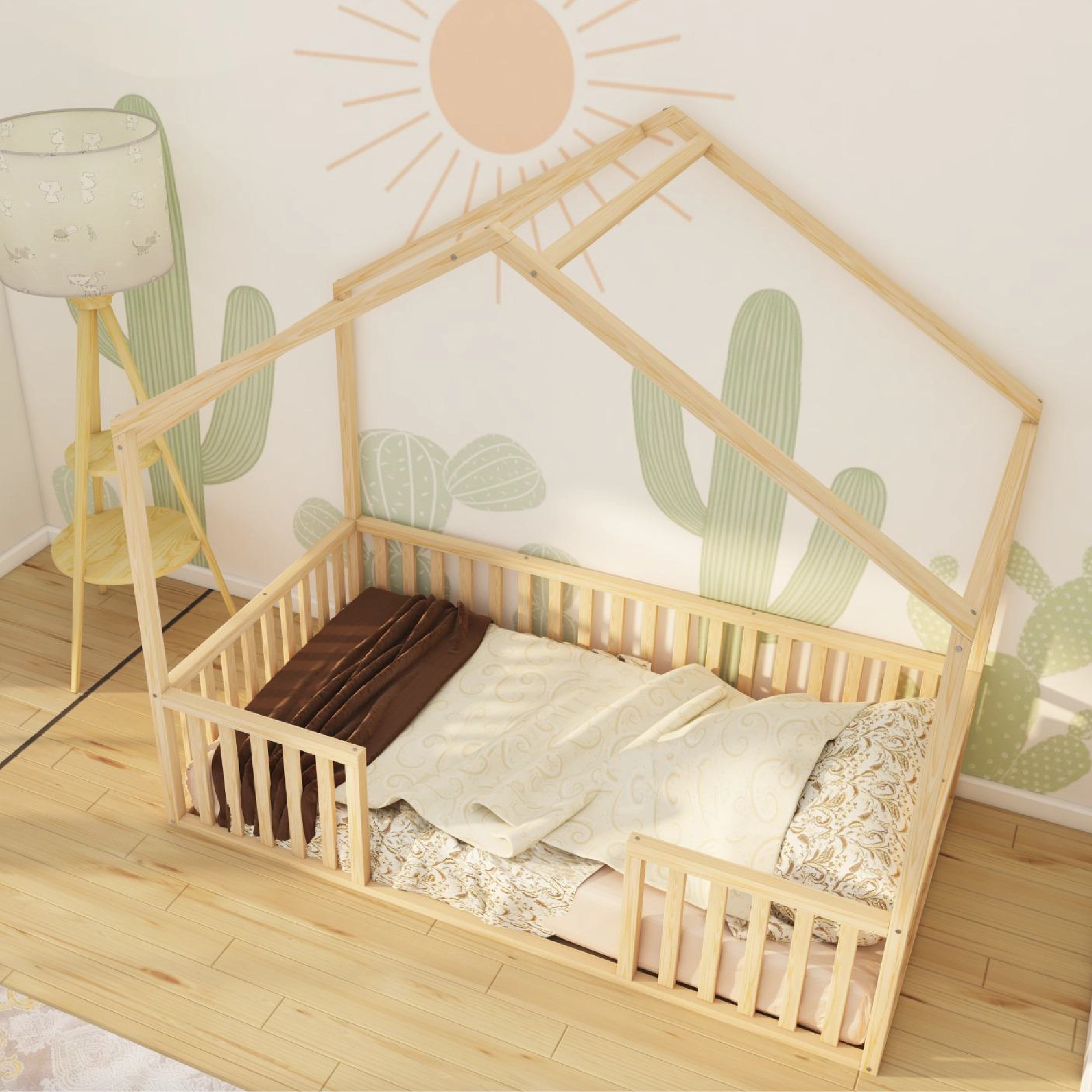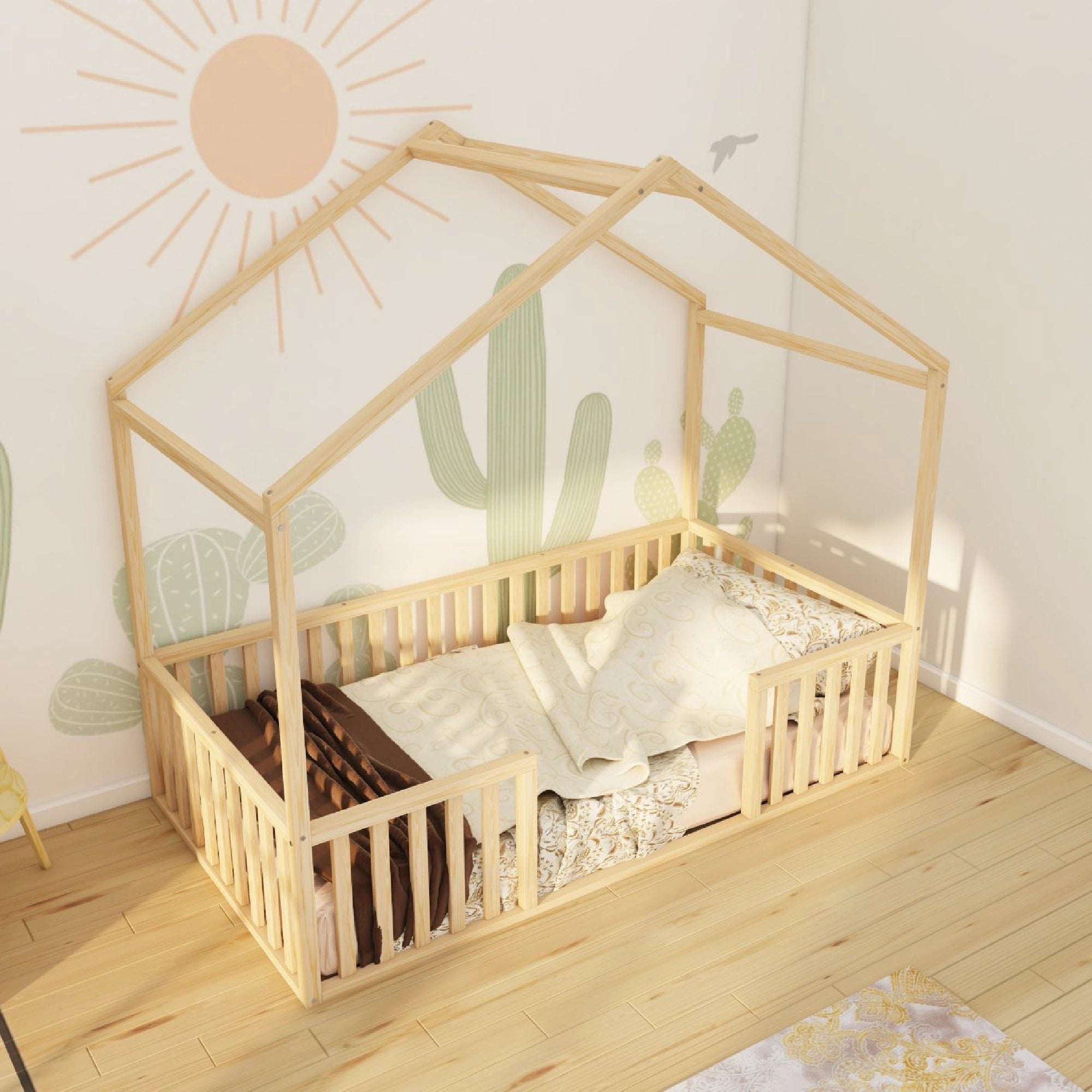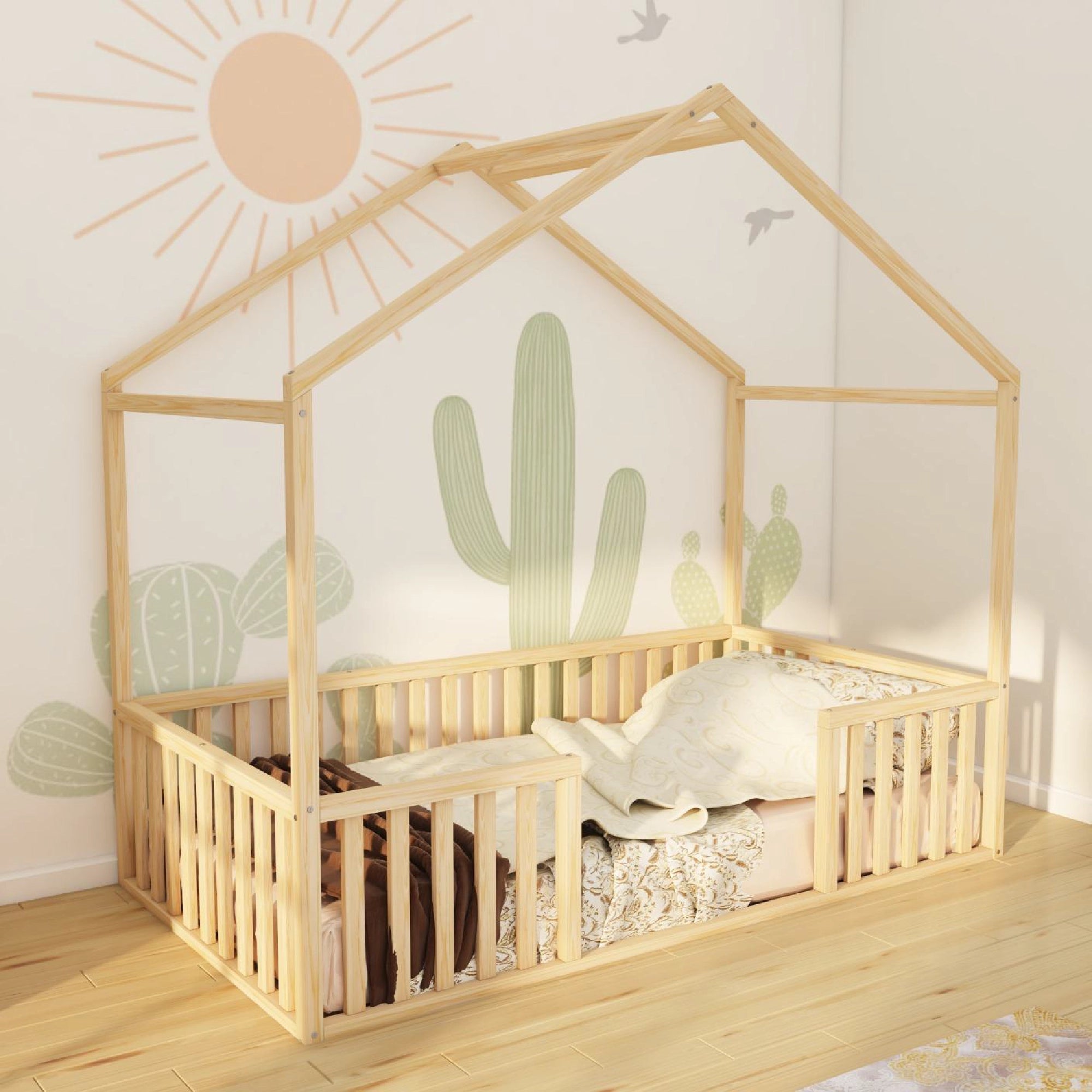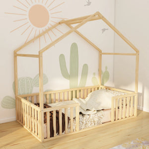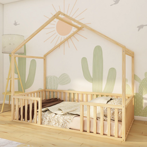 Kingsley - Montessori Playhouse Floor Bed with Railings