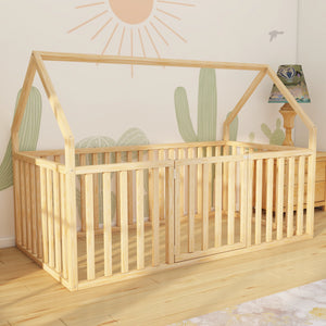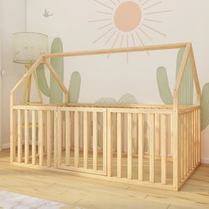 Middleton - Montessori Playhouse Floor Bed with High Railings and Gate