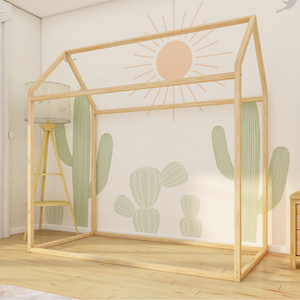Easy to assemble and maintain, this untreated pine wood Montessori children's bed serves as an ideal centerpiece for a nurturing and development-focused bedroom, promoting a connection with the natural world and encouraging exploration and creativity for your child's growth and development.